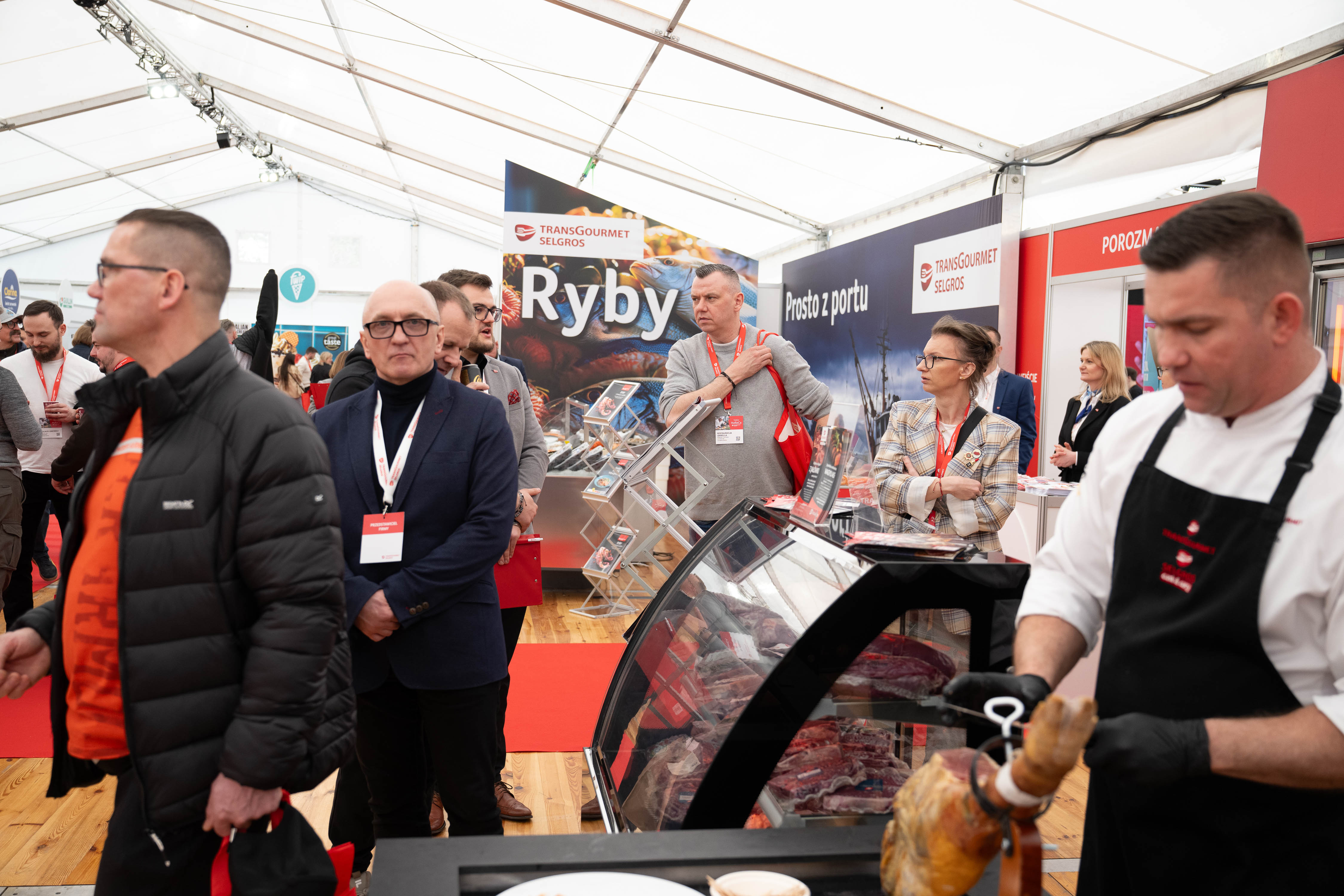 Przestrzeń targowa przyciągała uwagę efektownymi stoiskami ze świeżym mięsem oraz rybami i owocami morza znajdującymi się w stałej ofercie Transgourmet i Selgros, które cieszyły się dużym zainteresowaniem gości wydarzenia.