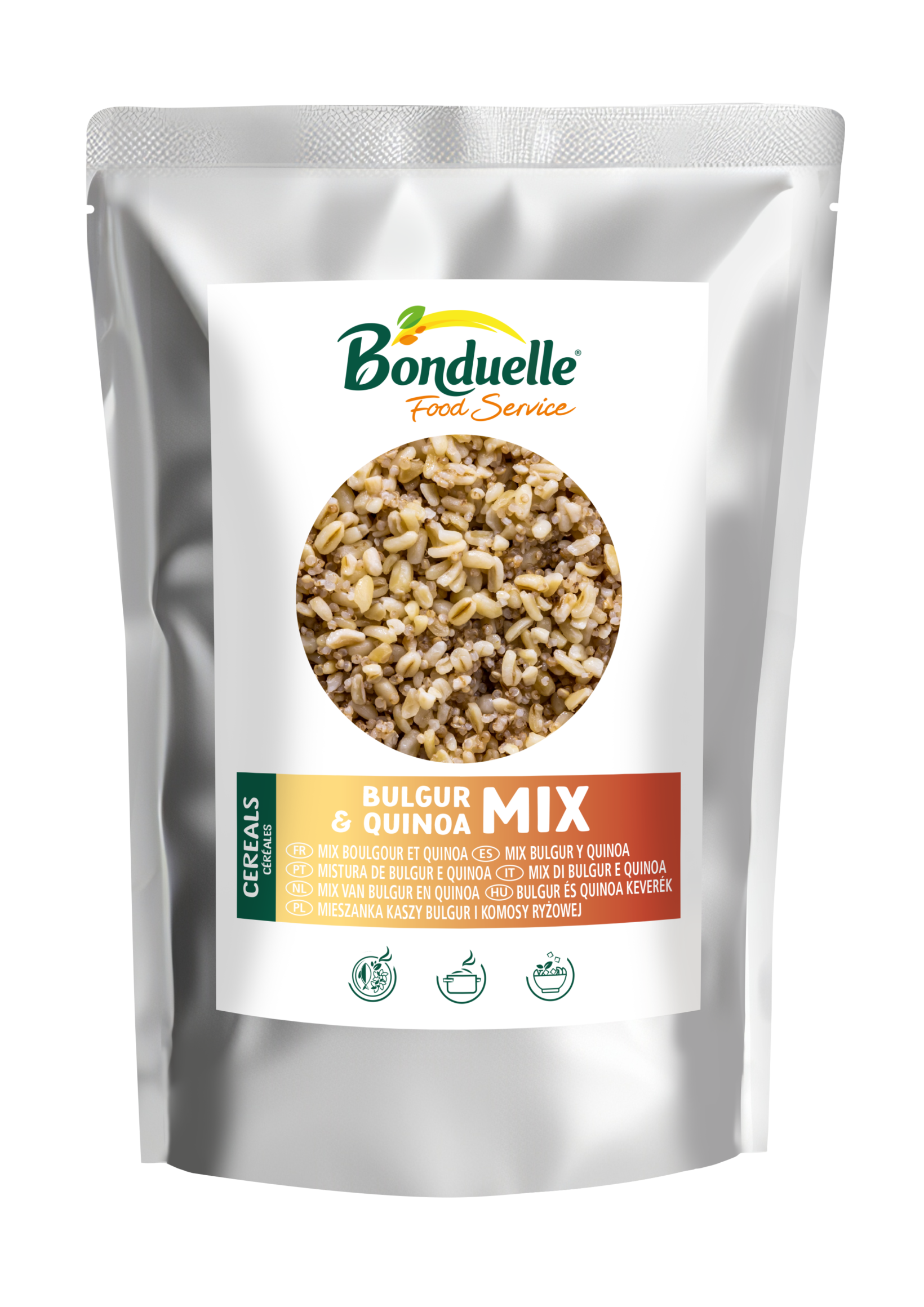 Odkryj 6 produktów ambient zamkniętych w torebkach Doypack®: mix pszenica i czerwona quinoa, mix kasza bulgur i quinoa, kasza gryczana prażona, biała fasola, czerwona fasola oraz cieciorka. Wygodny format 800 g dla dużej i małej gastronomii w poręcznym opakowaniu, które bez problemu postawisz na półce, co zapewnia łatwość przechowywania w każdym lokalu. Produkty przechowasz w temperaturze pokojowej. Już ugotowane kasze i strączki nie wymagają płukania ani gotowania, dzięki czemu oszczędzają czas oraz energię. Nie zawierają zalewy, są jędrne, kolorowe i pełne smaku. Nowoczesne opakowanie możesz łatwo i szybko otworzyć jednym ruchem ręki. Składana torebka to minimum odpadów opakowaniowych!