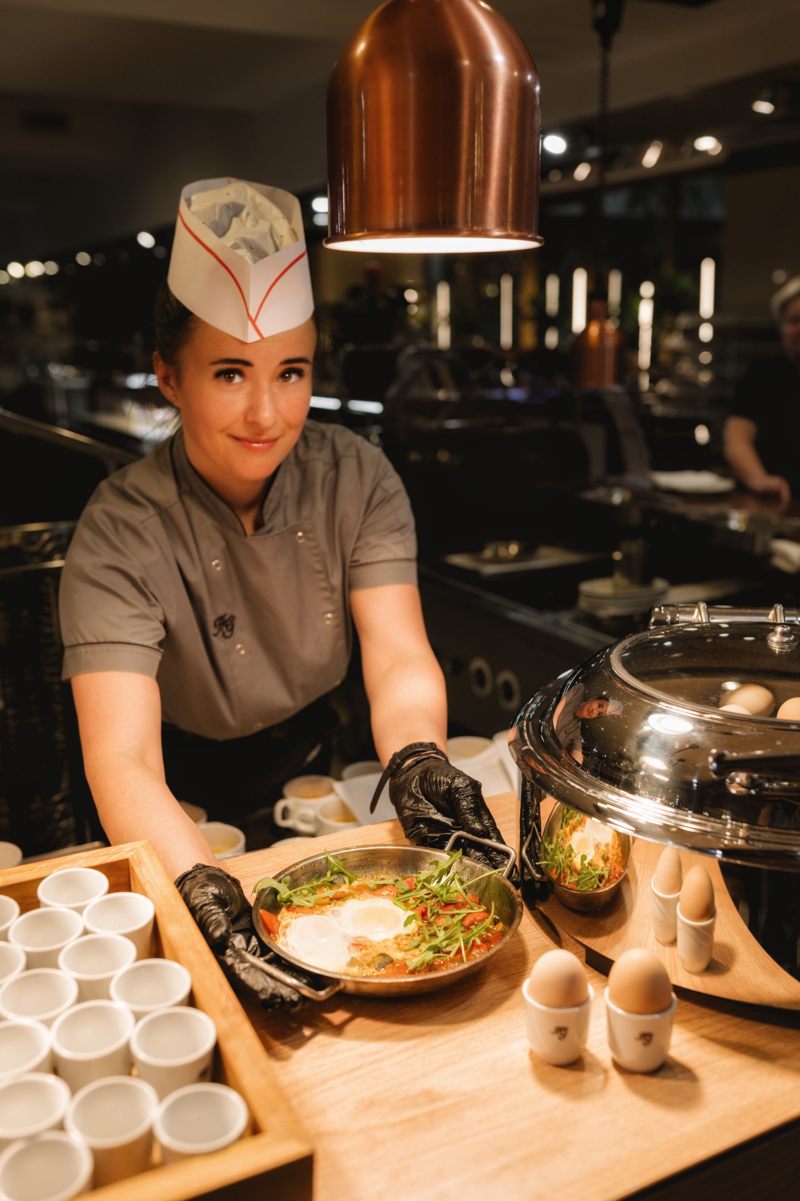Istotnym elementem oferty są też stanowiska live cooking, cieszące się niesłabnącą popularnością. To właśnie tam, na oczach gości, powstają dania przygotowywane na bieżąco, takie jak klasyczna jajecznica, omlety czy aromatyczna szakszuka, zawsze z dodatkami dobieranymi indywidualnie.