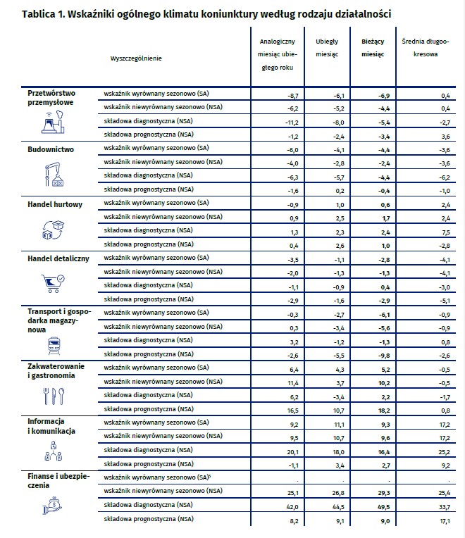 Główny Urząd Statystyczny opublikował informację sygnalną dotyczącą koniunktury gospodarczej w kwietniu 2026 r. W większości analizowanych sektorów widoczna jest stabilizacja lub poprawa nastrojów, a najbardziej zauważalną poprawę odnotowano w sekcji zakwaterowanie i gastronomia. Z kolei wyraźne pogorszenie koniunktury GUS zarejestrował w transporcie i gospodarce magazynowej.